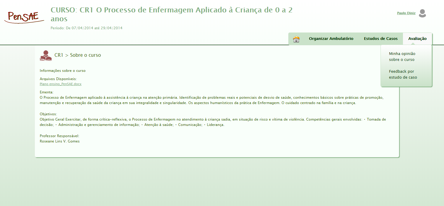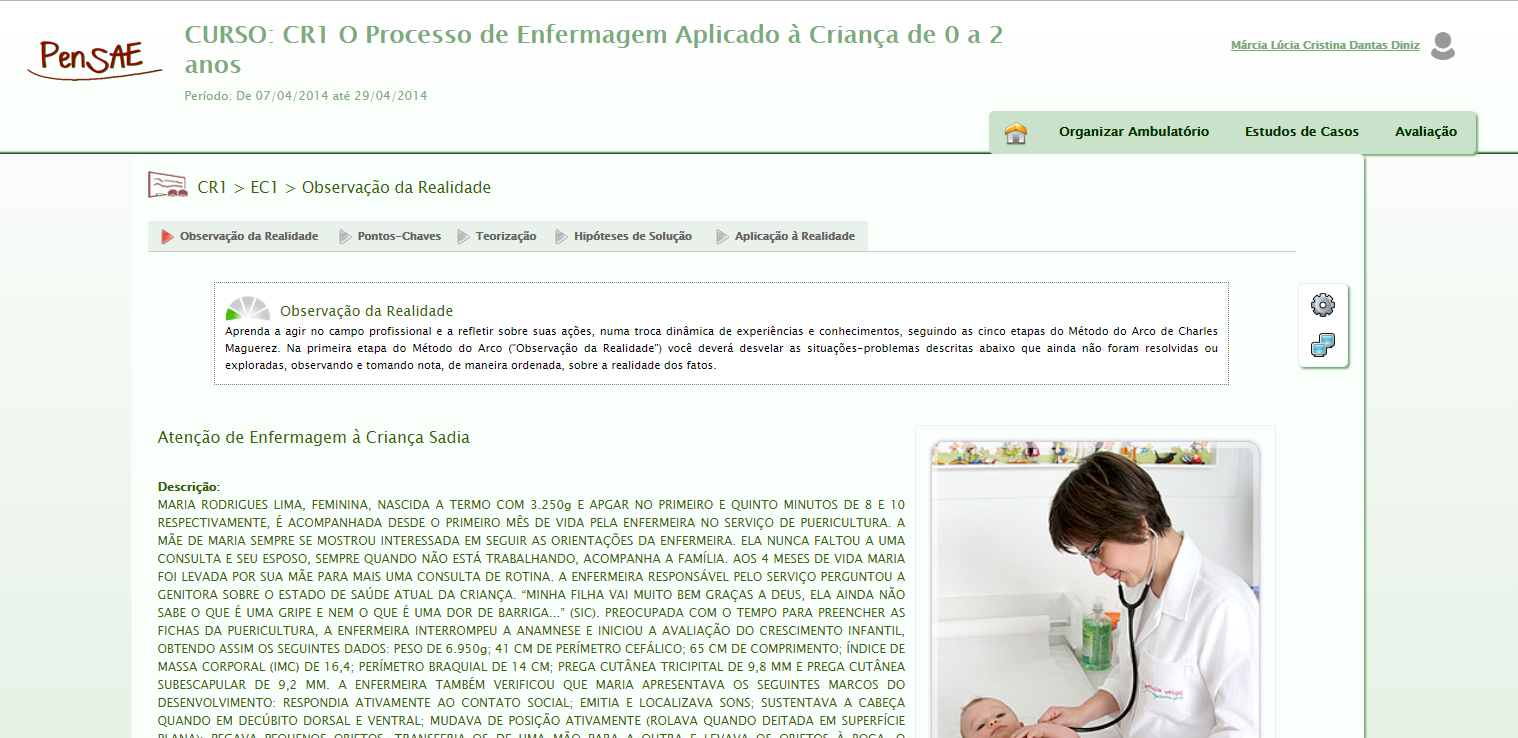 The Pensae project was build to analyze, from the student perception, the acquisition of competencies and skills necessary to practice the nursing process in the health care of children under two years old.